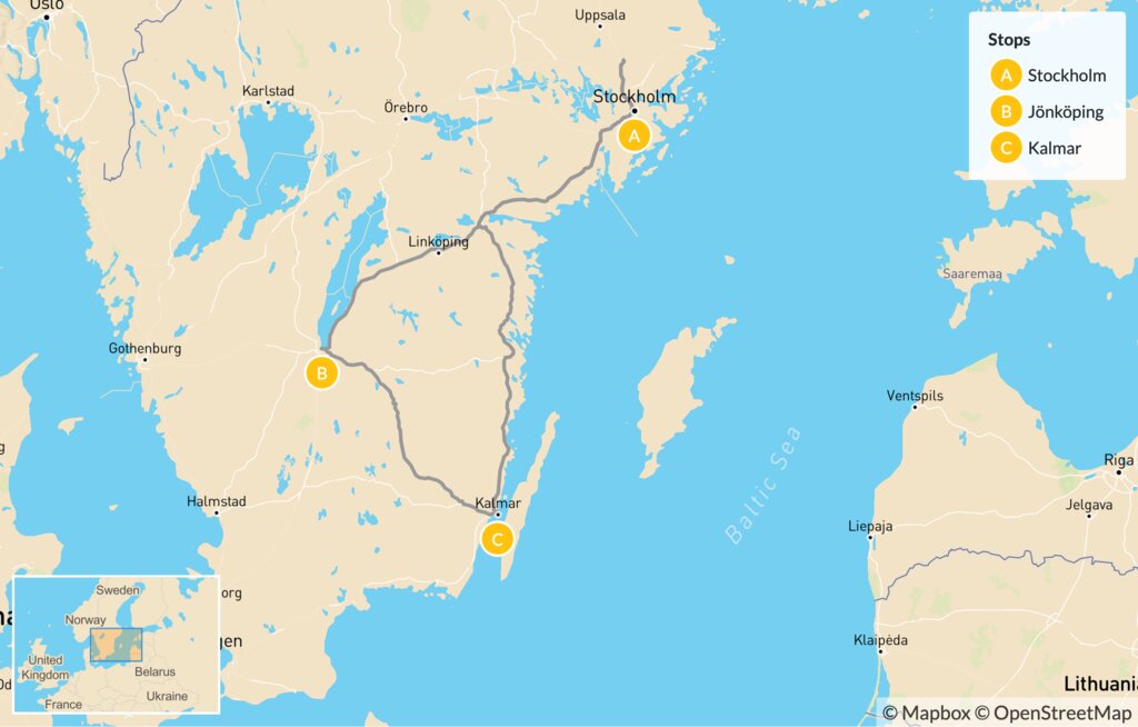 Map of Culture & Relaxation in Stockholm, Jönköping & Kalmar – 10 Days