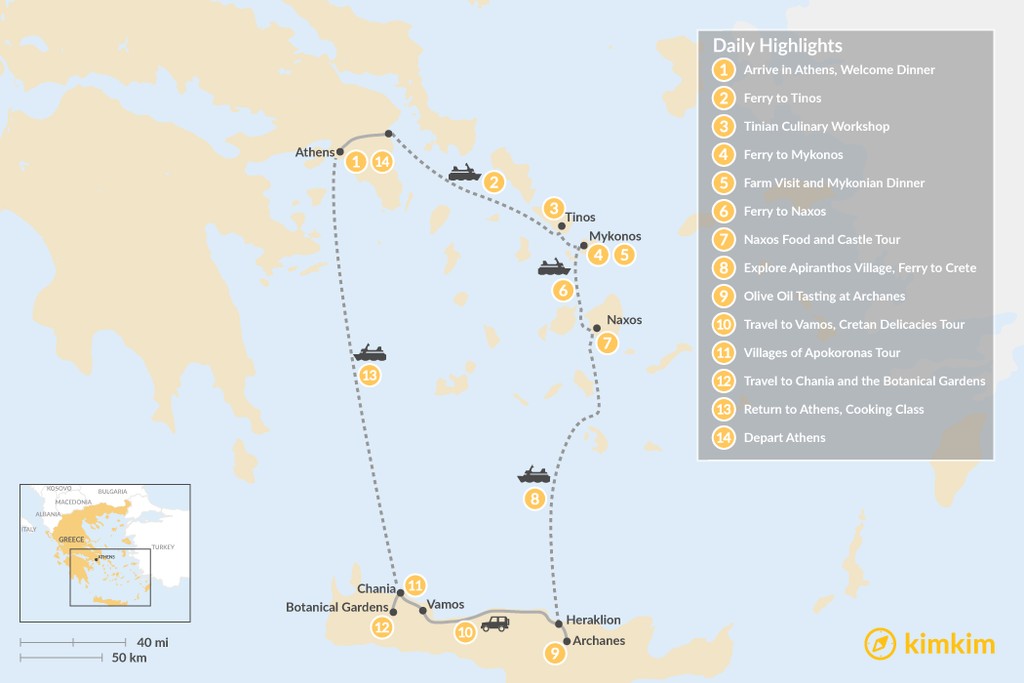 Map of Cyclades & Crete Culinary History Tour – 14 Days