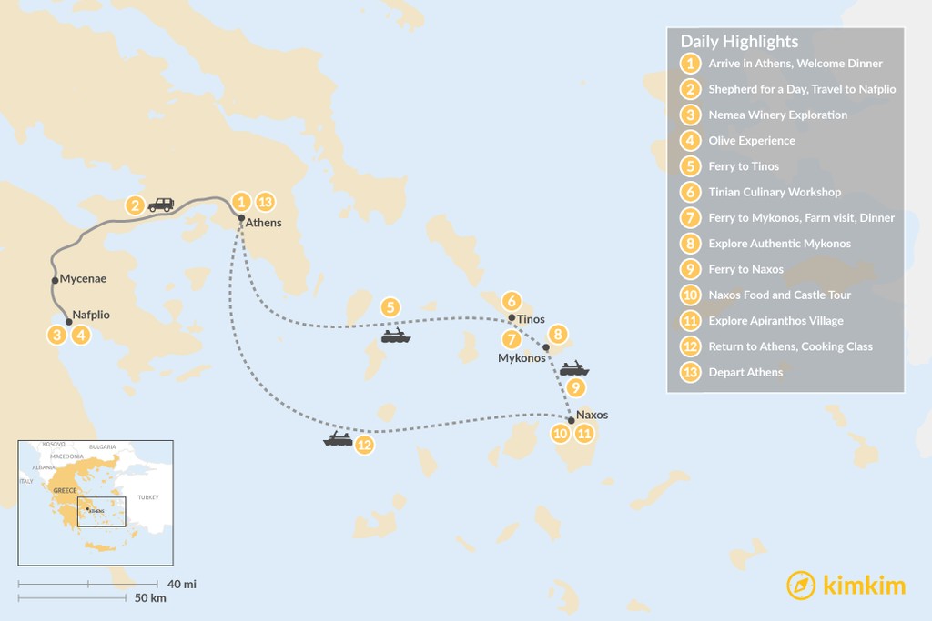 Map of Cyclades & Peloponnese Culinary Heritage – 13 Days