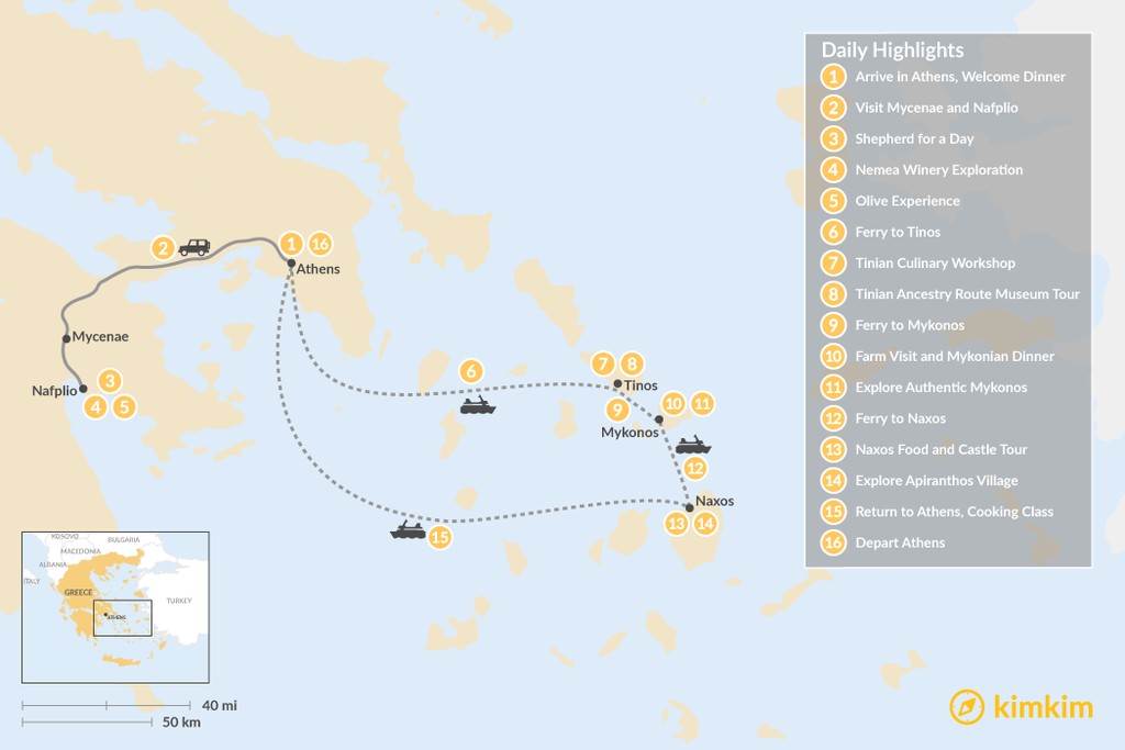 Map of Cyclades & Peloponnese Culinary Heritage – 16 Days