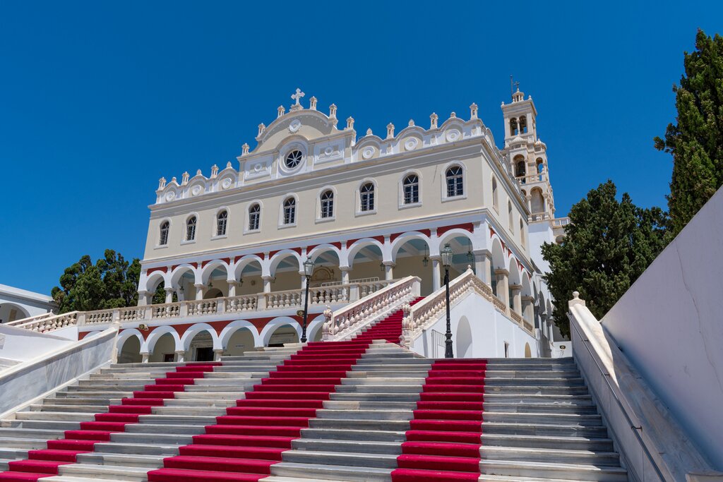 Get to know the history, art, and archaeology of Tinos with today’s guided tour, starting at the Sanctuary of Poseidon. One of the ancient world’s most important sanctuaries to the sea god, this was also a shared space to worship Amphitrite, the eldest of the Nereids and queen of the sea. Next up is the Archaeological Museum of Tinos, where you can find a collection of sculptures, pottery, and artifacts that provide insights into the island’s religious and artistic history. Continue to the Museum of Tinian Artists to explore the styles and influences that have shaped the island’s art through different periods.