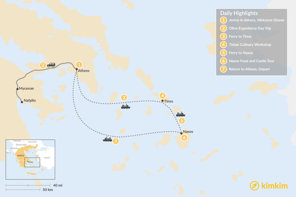 Map of Cyclades & Peloponnese Culinary Heritage – 7 Days