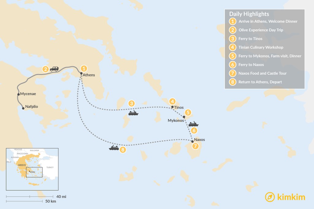 Map of Cyclades & Peloponnese Culinary Heritage – 8 Days