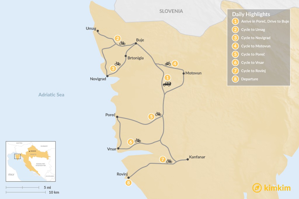 Map of Cycle the Wine Roads of Istria – 8 Days