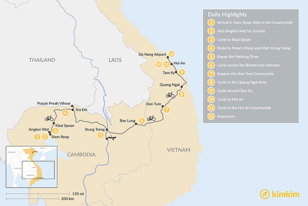 Map of Cycle through Cambodia and Vietnam – 12 Days