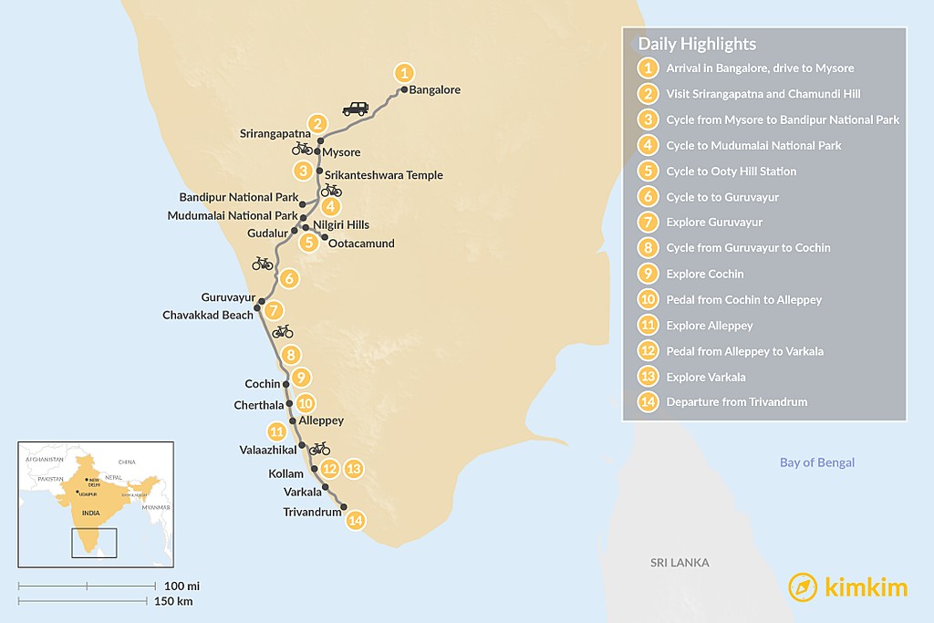 This cycling adventure through southwest India will take you from abundant forests to spice plantations, from sophisticated temples to beaches and backwater canals. The region’s jungles and waterways, colorful towns and fishing villages, beaches and delicious cuisine will all be explored as you pedal the rural roads of Karnataka and Kerala.