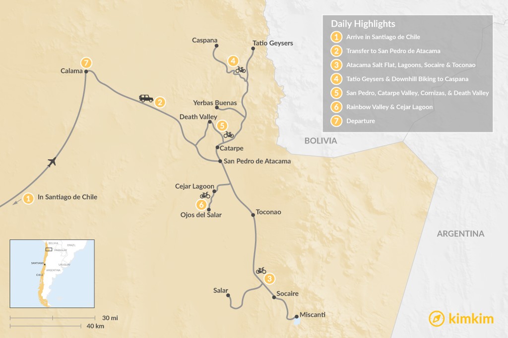 Map of Cycling the Atacama Desert in Chile – 7 Days