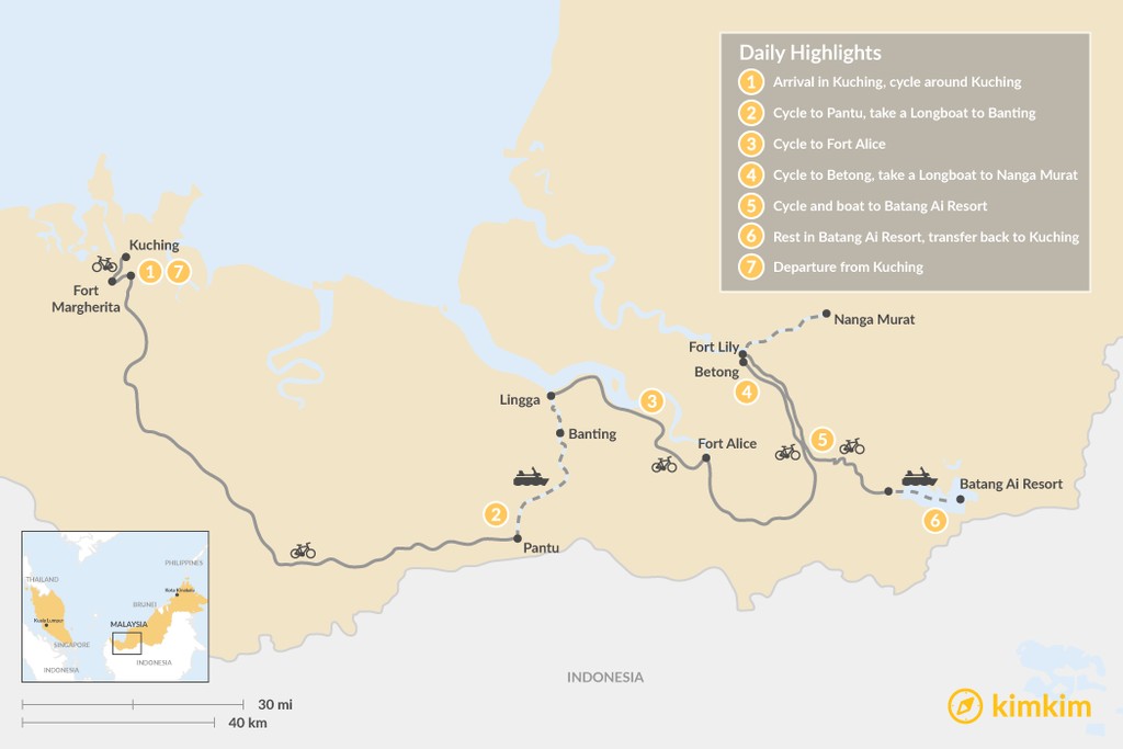 | Day 5 | Cycle & Boat to Batang Ai Resort | Batang Ai |