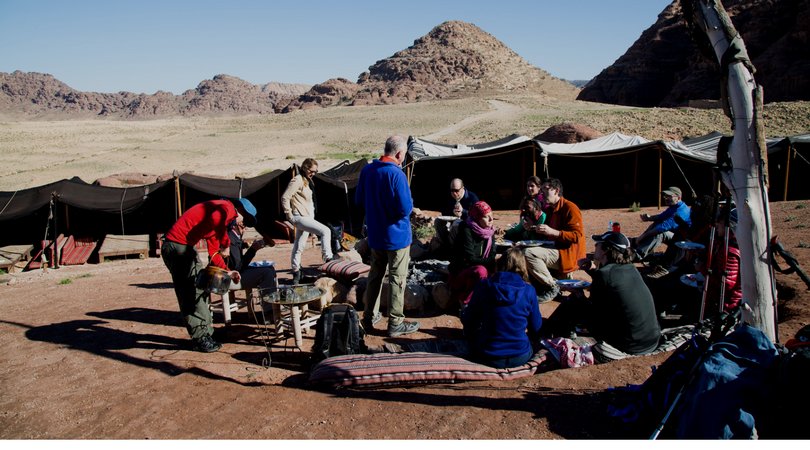 The nine-day trek to the ancient city of Petra is unique in that it runs through the 4 biospheres inside of the Wadi Dana Reserve. The diversity of the scenery on this hike is most surprising to visitors who expect to see nothing but desert in Jordan.