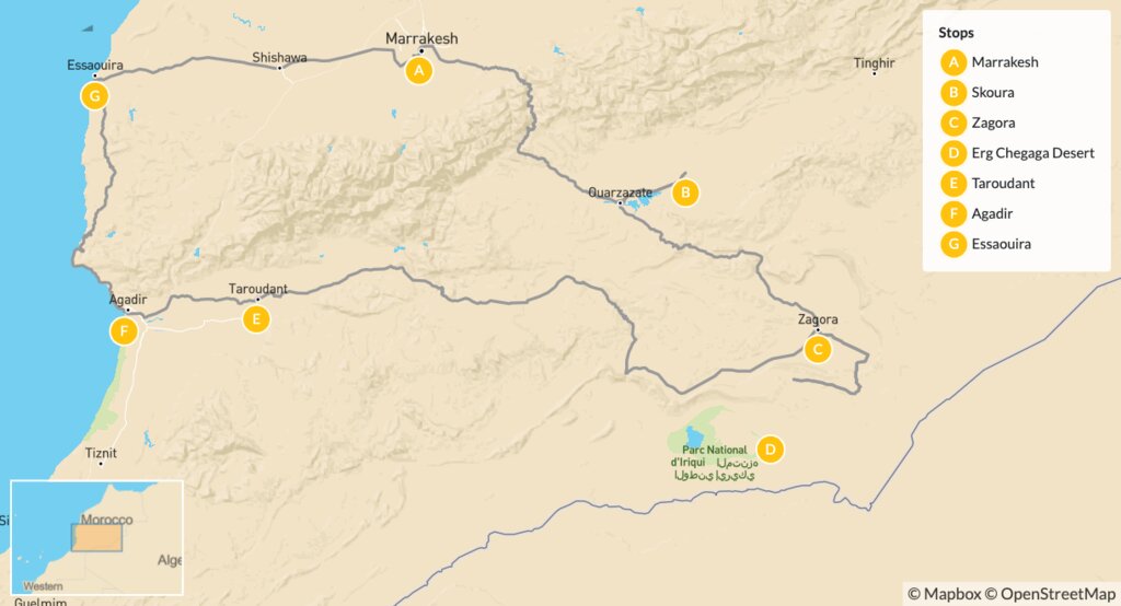 Map of Desert Elegance: The Luxury of Morocco’s Southern Landscapes – 14 Days