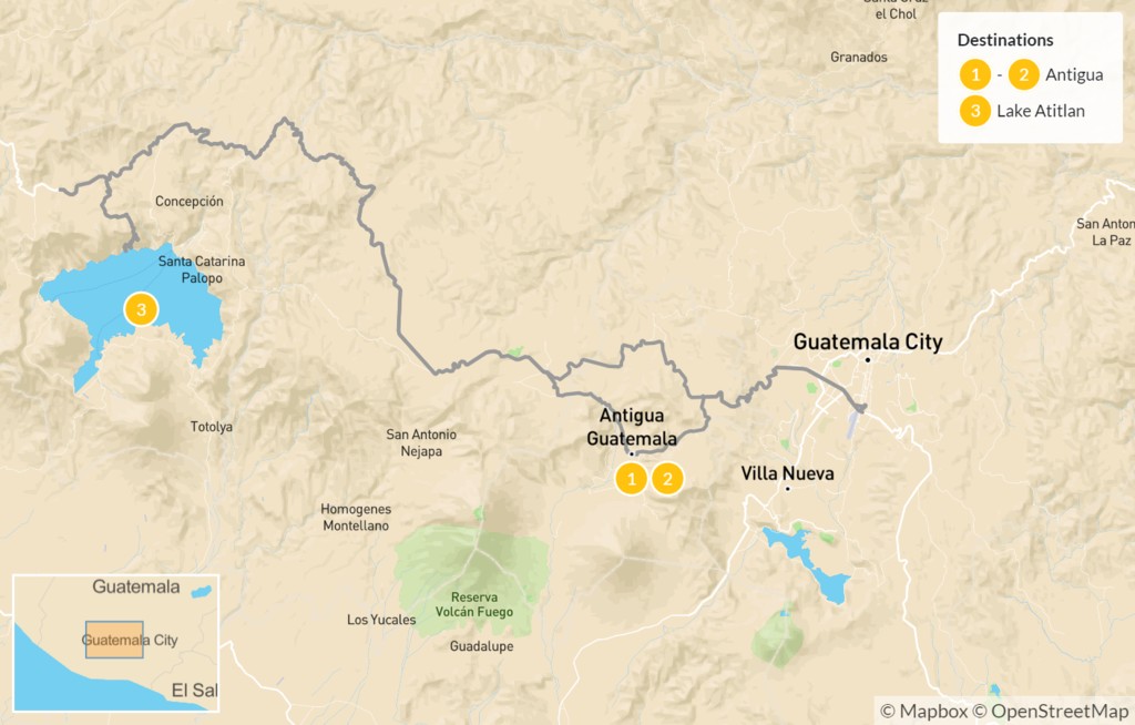 Map of Discover Antigua & Lake Atitlán – 4 Days