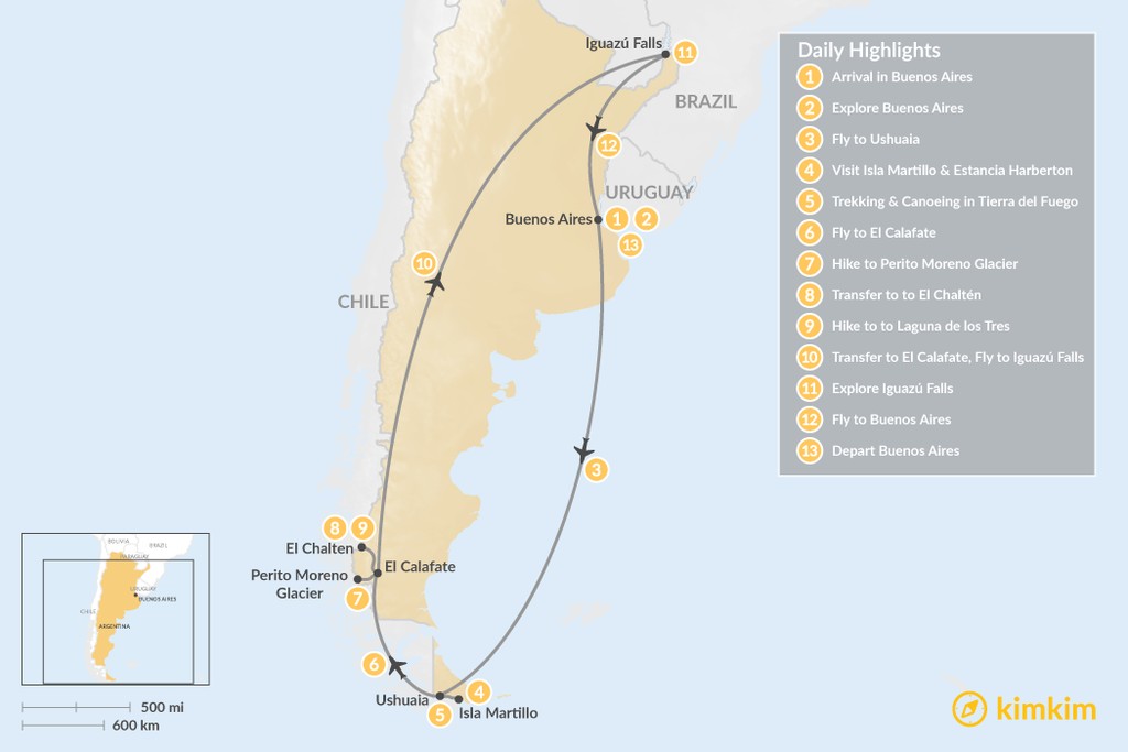 Map of Discover Argentina’s Highlights: Buenos Aires, Patagonia & Iguazú Falls – 13 Days