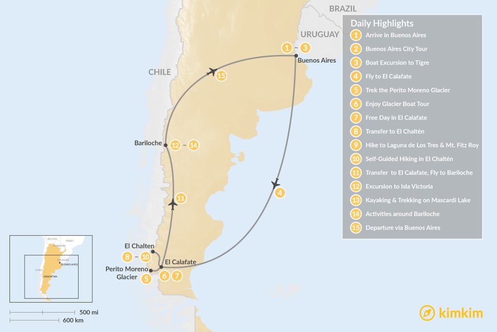 Map of Discover Argentine Patagonia: El Calafate, El Chaltén, Bariloche – 15 Days