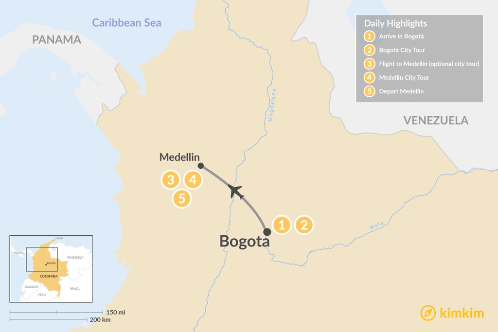 Map of Discover Bogotá & Medellín – 6 Days