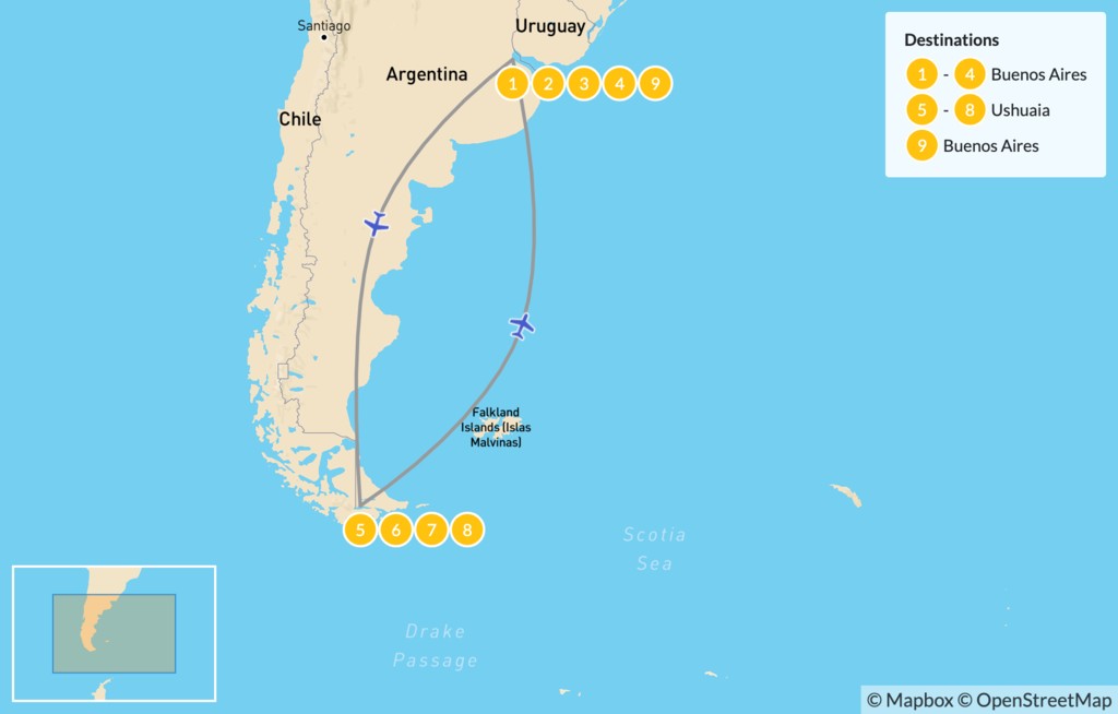 Map of Discover Buenos Aires & Ushuaia – 10 Days