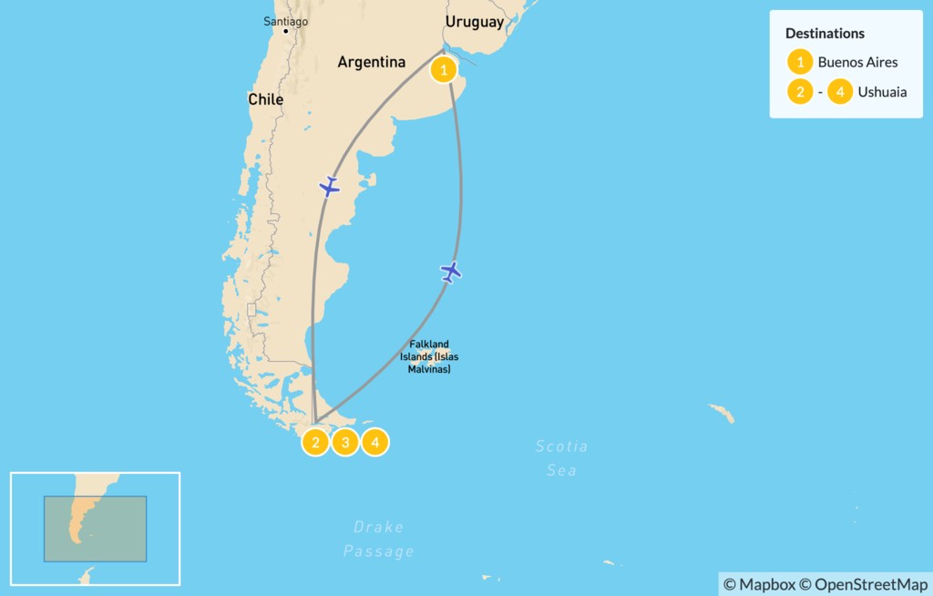 Map of Discover Buenos Aires & Ushuaia – 5 Days