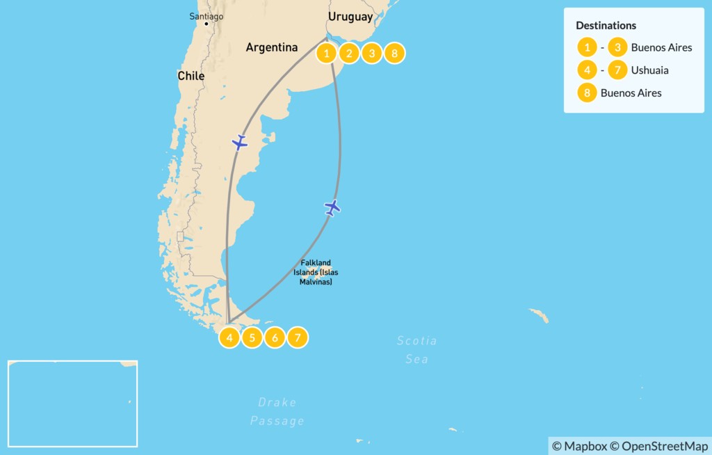 Map of Discover Buenos Aires & Ushuaia – 9 Days