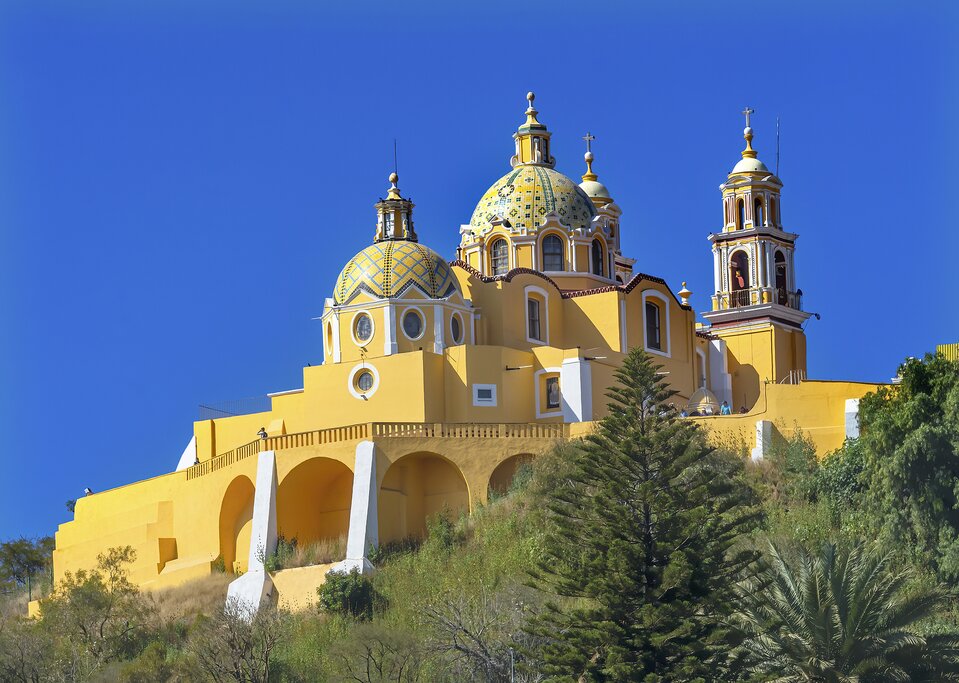 You’ll learn about Cholula’s history, culture, myths, and legends on a 5-hour guided tour down its colorful streets. Then you’ll head up to the Nuestra Señora de Los Remedios, Cholula’s gilded neoclassical church that dates to 1574. It was famously built atop a 177-foot-high (54-m) pyramid that is part of a large pre-Hispanic archeological site. You’ll have an impressive view of the city from the church and, on a clear day, can even see the towering volcanoes of the Valley of Mexico.