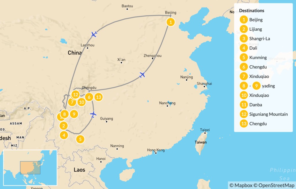 Map of Discover China: Yunnan & Western Sichuan – 14 Days
