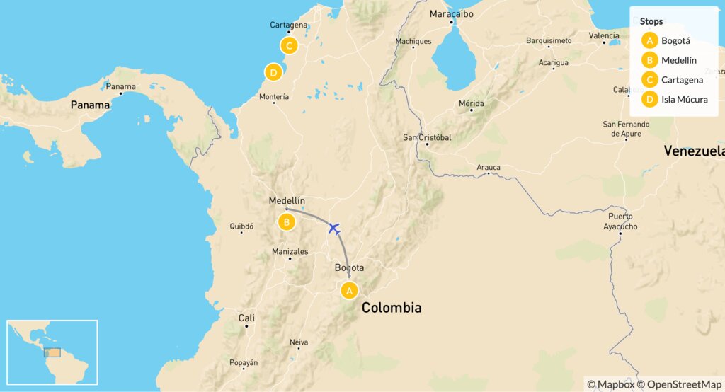 This 12-day trip highlights four of Colombia’s most exciting cities—perfect for travelers who love urban energy and culture. Start off with tours in Bogotá and Medellín, two cities with their own treasures to discover, then head north to Cartagena for colonial romance, art galleries, and rooftop bars. End your trip with two nights on the San Bernardo Islands, including picture-perfect Isla Múcura.