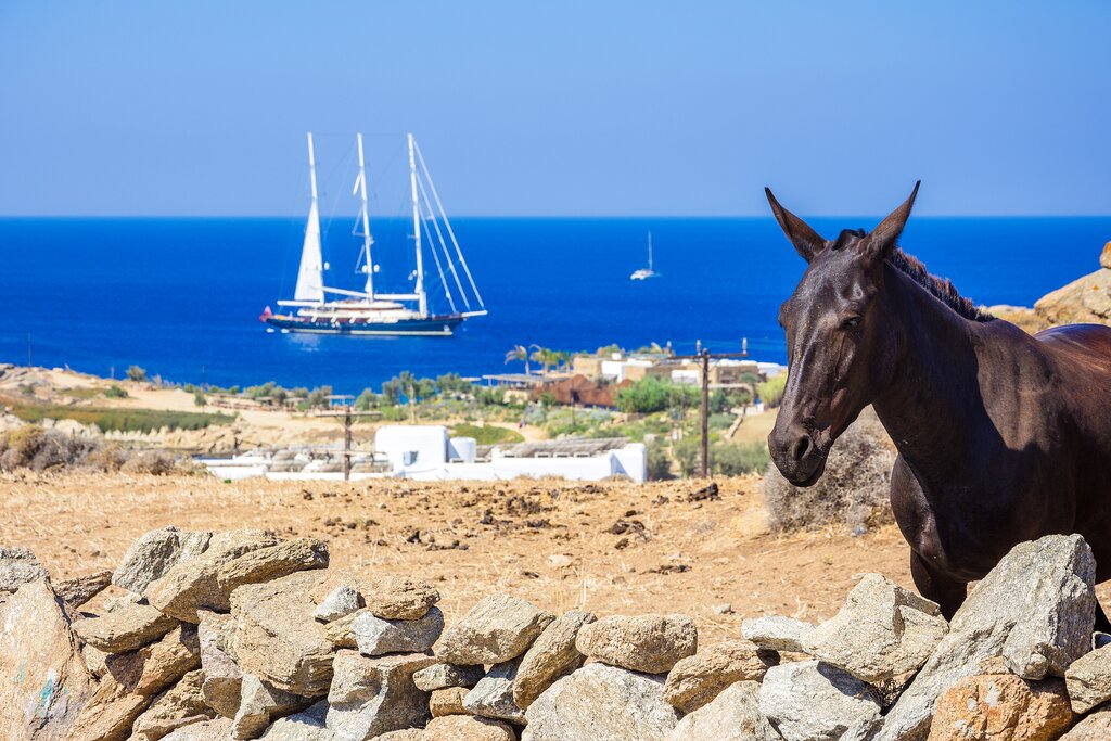 Today, you’ll go on a half-day cruise on a traditional sailboat. The first stop is Delos. You’ll go for a walk through the old town and visit the island’s main archaeological site. As mythology has it, this is the birthplace of Apollo (god of light and the sun) and Artemis (goddess of the hunt). The second stop is Rhenia Island and a break on the beach at Skinos Bay, known for its clear azure waters. You’ll head back to Mykonos later in the day.