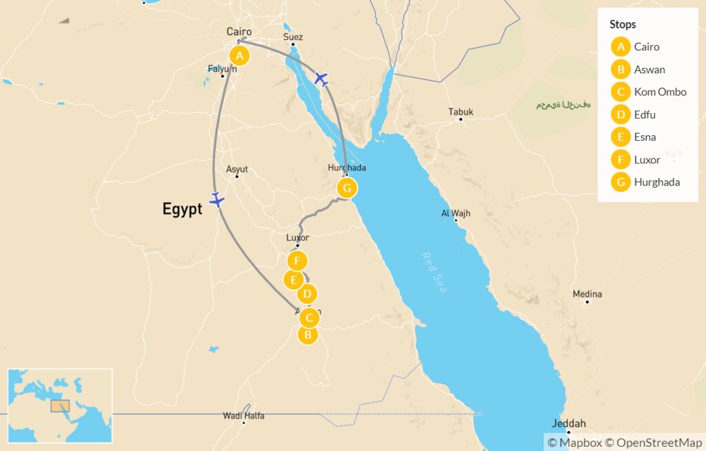 Map of Discover Egypt’s Capital & Sail the Nile River – 10 Days