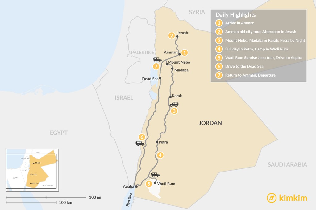Map of Discover Jordan: Petra, Wadi Rum, Dead Sea – 7 Days