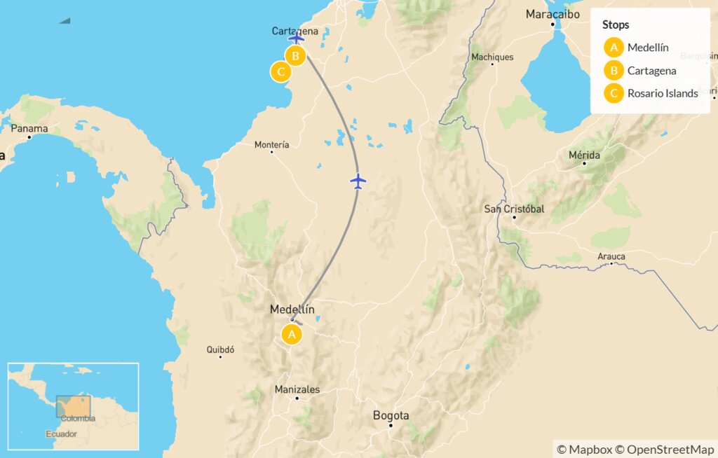 Map of Discover Medellín, Guatapé & Colombia’s Caribbean Coast – 8 Days