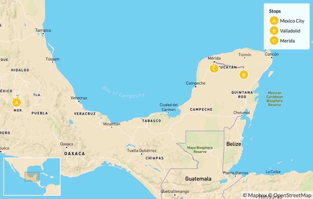 Map of Discover Mexico from the Capital to the Beach: Mexico City, Valladolid & Mérida – 11 Days
