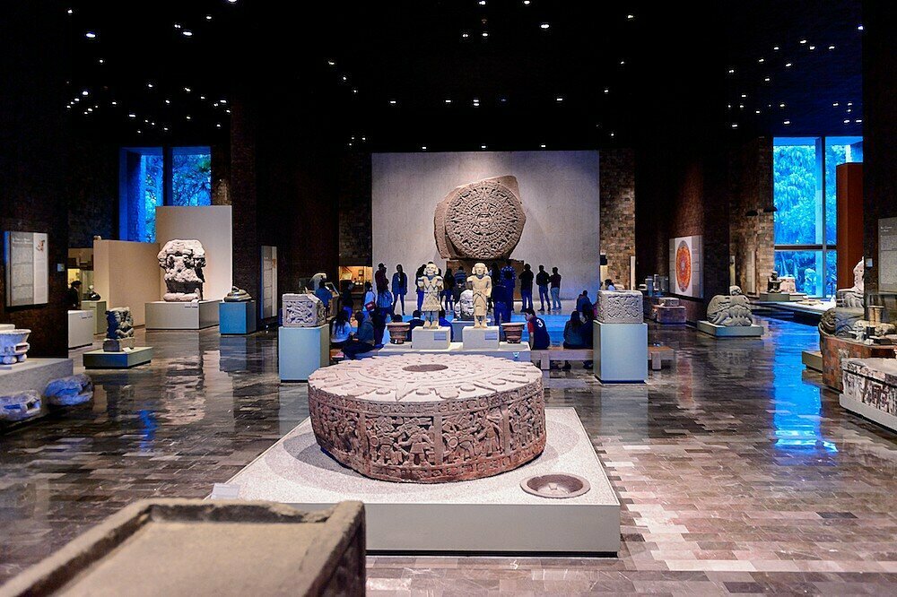 Today you’ll enjoy a 2.5-hour guided tour of the Museum of Anthropology, an architectural marvel built in the ’60s by architect Pedro Ramírez Vázquez. Its 23 rooms and outdoor exhibit spaces are home to the world’s most extensive collection of ancient Mexican art. There are many pre-Columbian sculptures and ethnographic exhibits about modern-day Indigenous groups. Highlights include the Aztec Calendar, The Olmec colossal head (a giant stone head carved out of basalt), and the jade Mask of the Zapotec Bat God.
