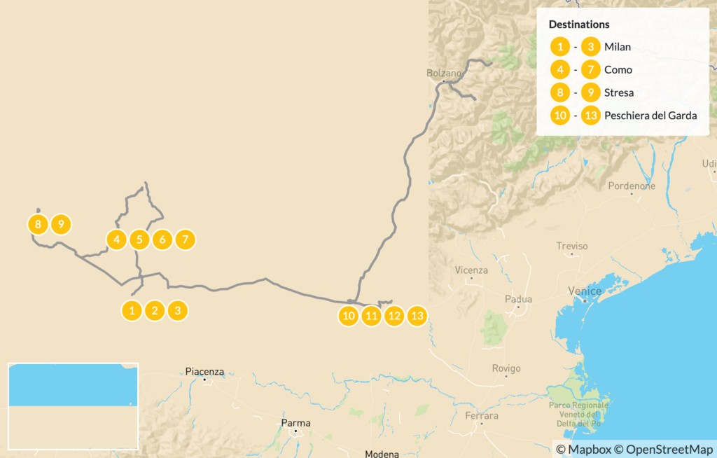 Map of Discover Milan and Italy’s Lakes Region – 14 Days