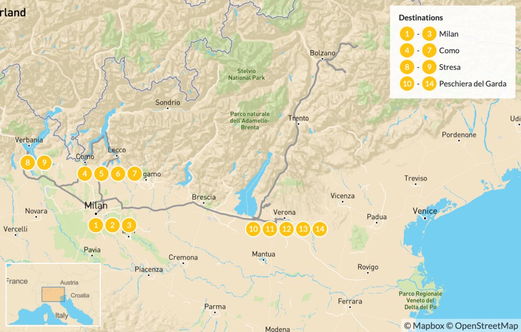 Map of Discover Milan and Italy’s Lakes Region – 15 Days