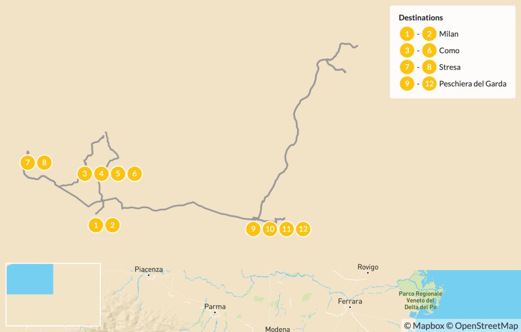 Map of Discover Milan and the Italian Lakes – 13 Days