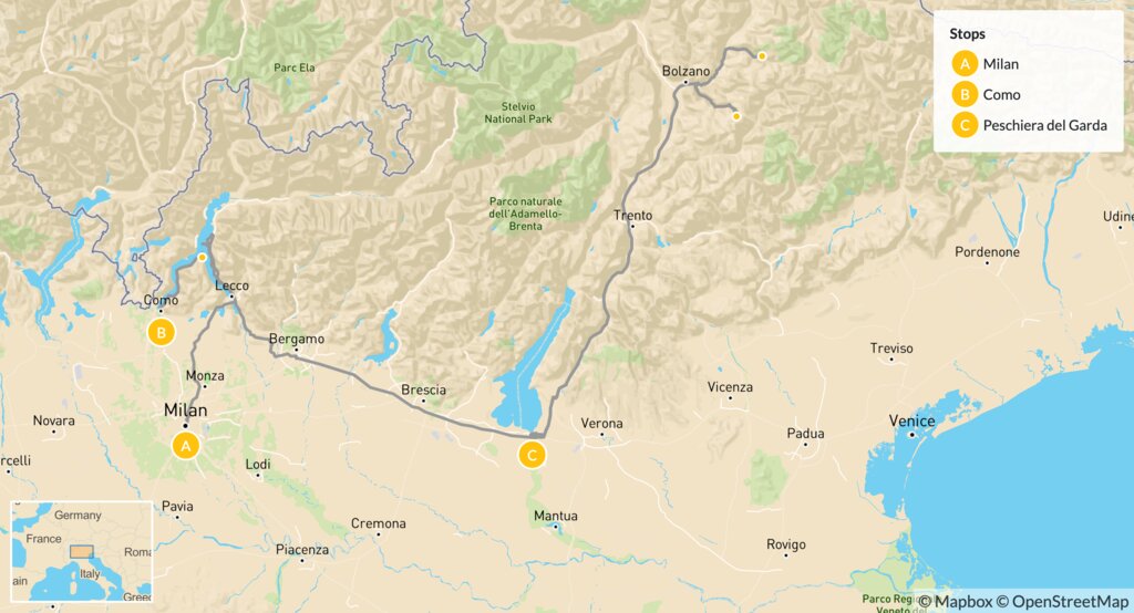 Map of Discover Milan & Italy’s Lakes Region – 8 Days