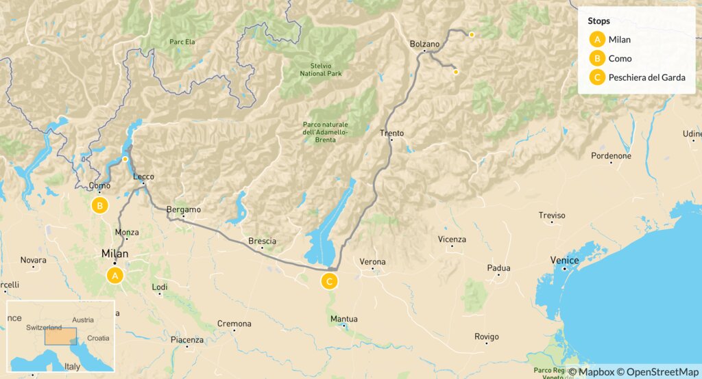 Map of Discover Milan & Italy’s Lakes Region – 9 Days