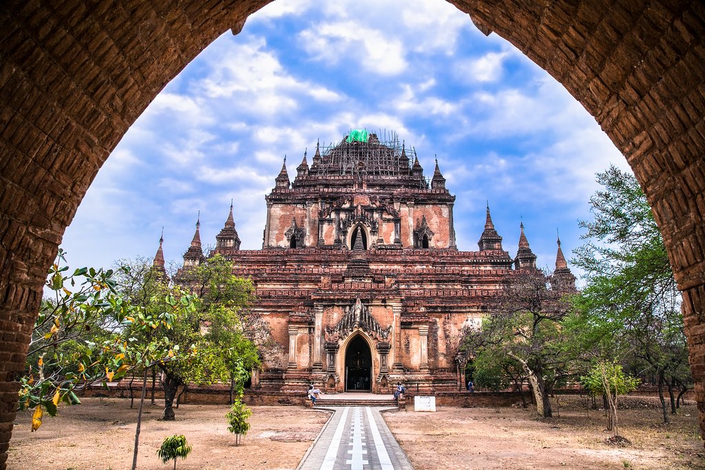 Instead of driving all the way to Bagan, you will turn off the main road on the outskirt of the town at the ‘hidden’ temple of Kyauk Gu U Min. Explore this massive multi-story temple built into the side of a cliff, discovering meditation caves and impressive stone carvings. Then you will walk to the riverside where a private wooden boat awaits. Cast off and cruise the final hour into Bagan along the Irrawaddy River. Enjoy river views and watch as the temples of Bagan come into view in the distance.