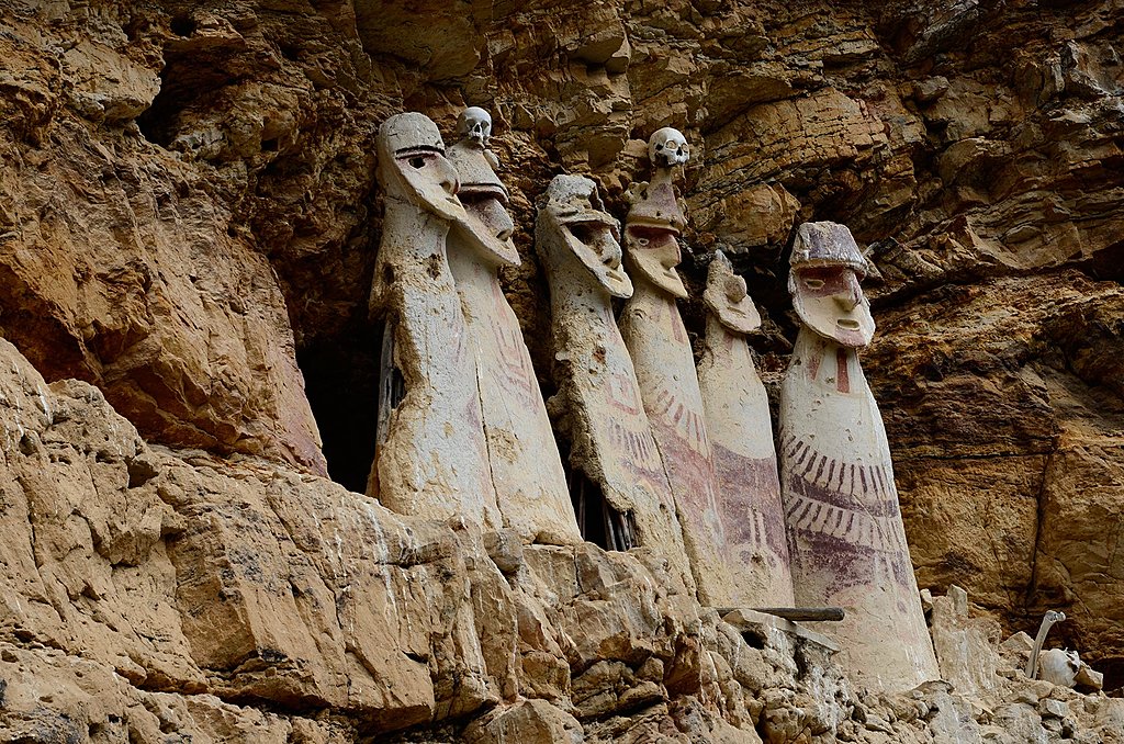 In the morning, meet your driver for the 1.5-hour drive from Chachapoyas to Karajia. This peculiar funerary site consists of a set of unique sarcophagi. Known as the purunmachus, these anthropomorphic figures are perched high on a cliffside overlooking the Utcubamba Valley. Upon arrival at a nearby town, you’ll hike on foot for about 30 minutes to the sarcophagi viewpoint. Once there, you’ll have a great vantage point to admire these striking icons, which have been overlooking the valley for over 750 years.