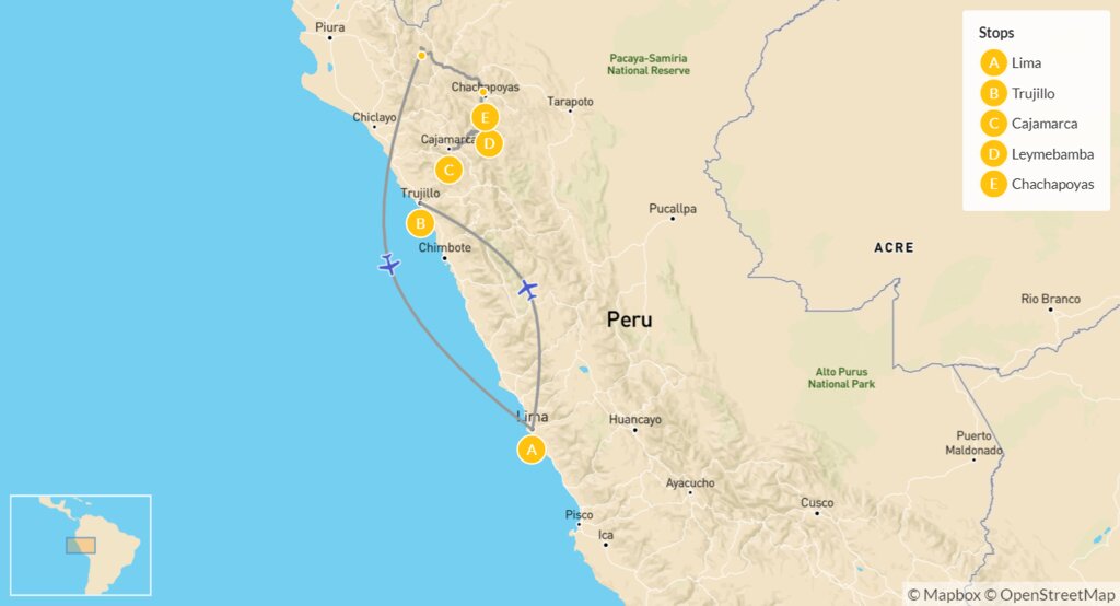 Map of Discover Northern Peru: Lima, Trujillo, Chiclayo & Chachapoyas – 10 Days