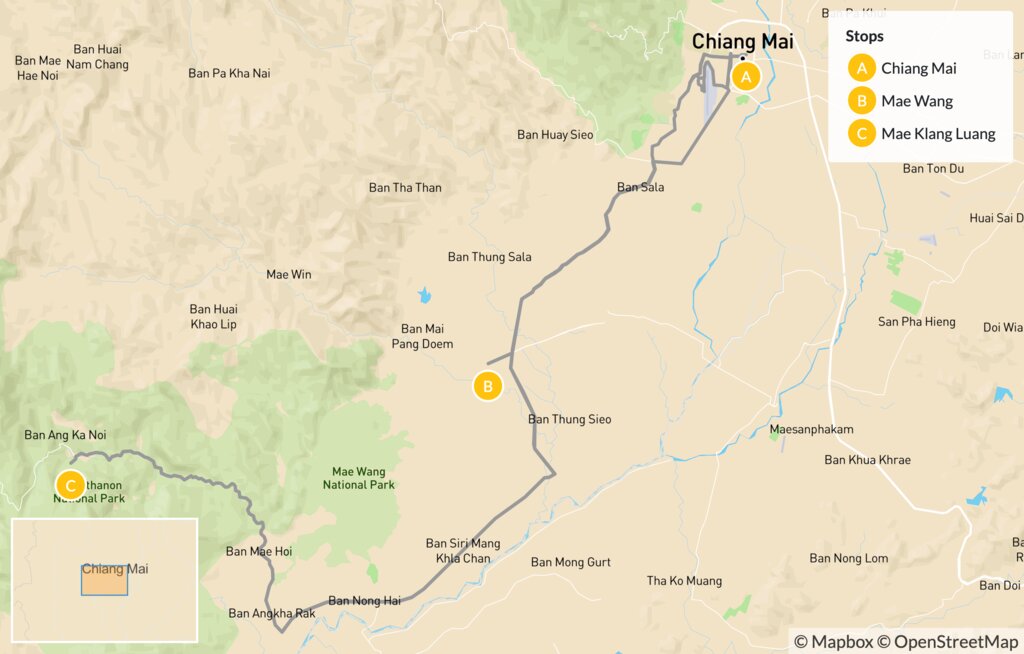 Map of Discover Northern Thailand by Tuk-Tuk: Chiang Mai, Mae Wang & Mae Klang Luang – 8 Days