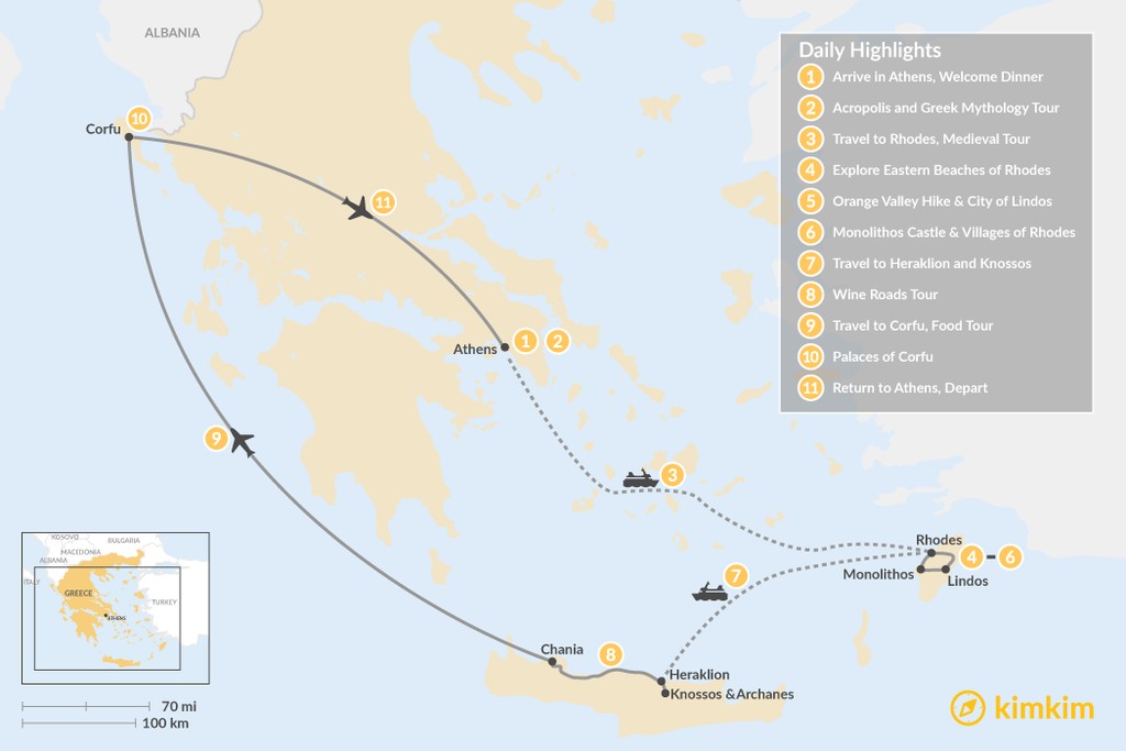 Map of Discover Rhodes, Crete, and Corfu – 11 Days