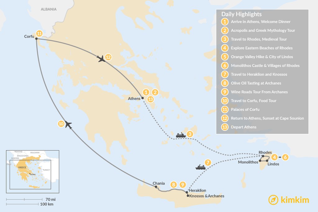 Map of Discover Rhodes, Crete, and Corfu – 13 Days