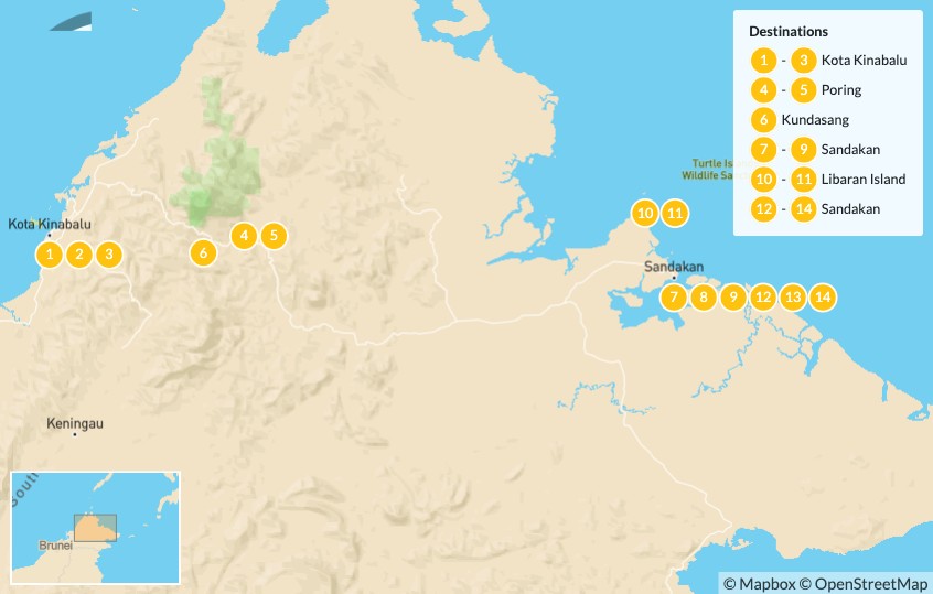 Map of Discover Sabah: Off the Beaten Path in Malaysian Borneo – 14 Days
