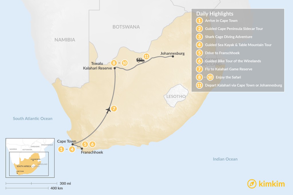 Map of Discover South Africa: Cape Town, Winelands, & Tswalu Kalahari – 11 Days