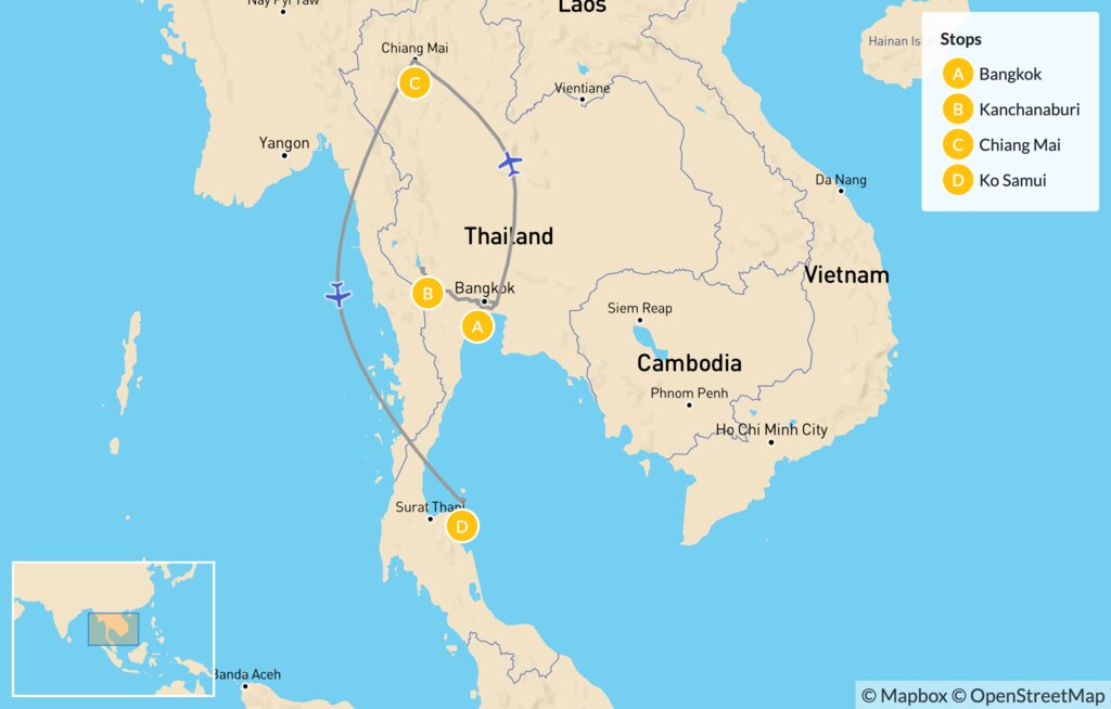 Map of Discover Thailand: Bangkok, Kanchanaburi, Chiang Mai & Ko Samui – 11 Days