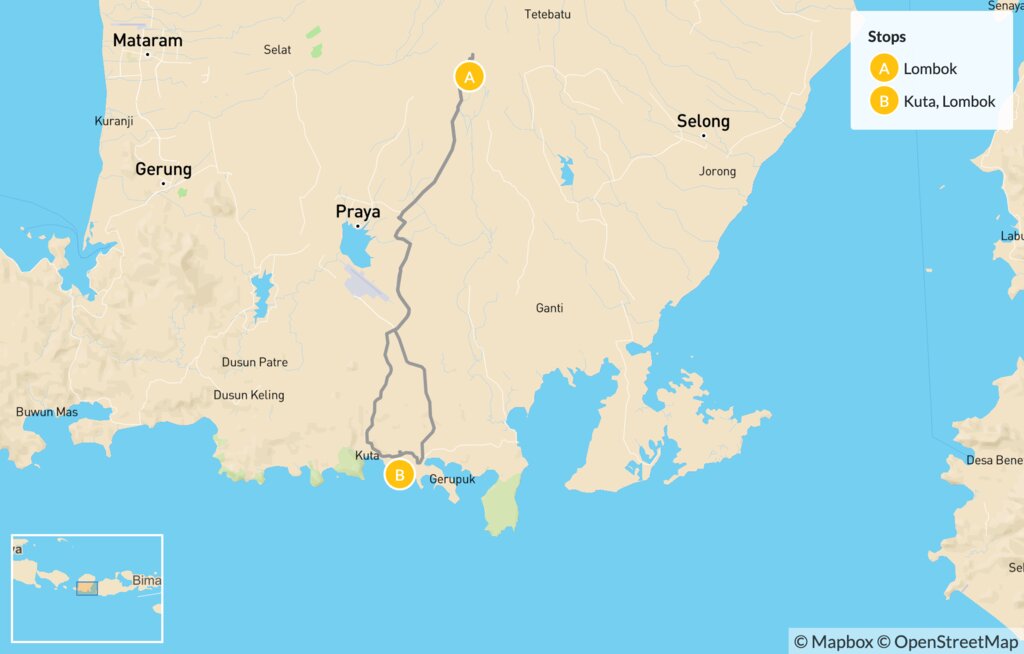 Map of Discover the Beautiful Beaches & Culture of Lombok – 6 Days