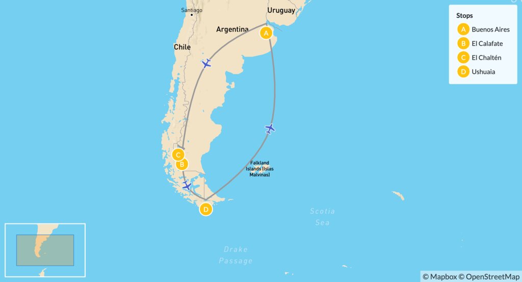 Map of Discover the Best of Argentine Patagonia – 14 Days