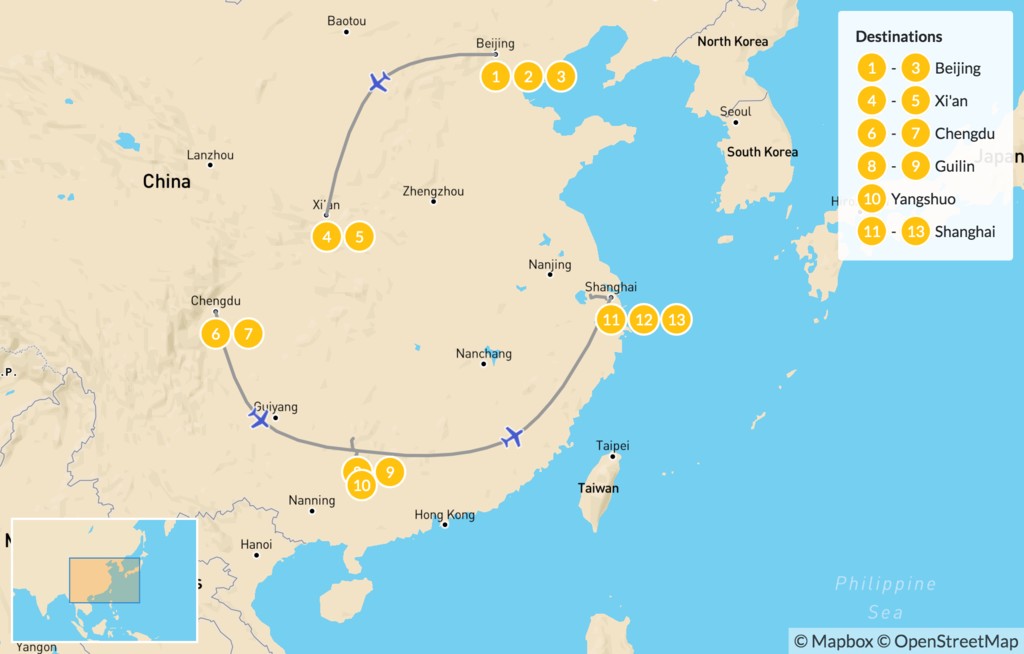 Map of Discover the Best of China: Beijing to Shanghai – 14 Days