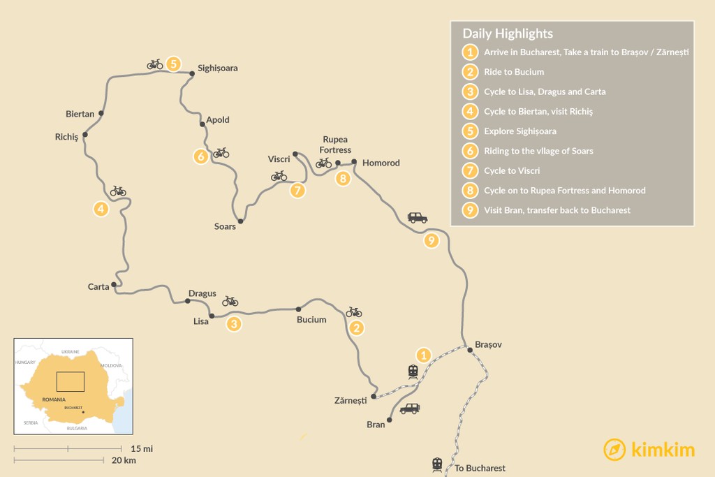 Map of Discover Transylvania’s Heritage by Bike – 9 Days
