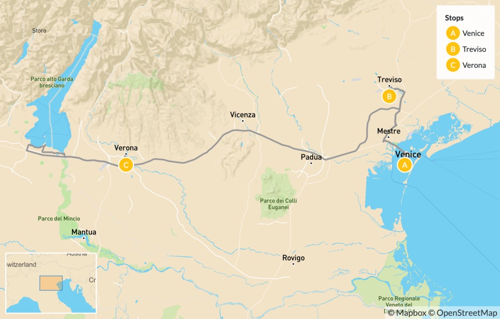 Map of Discover Treviso, Venice and Verona – 5 Days