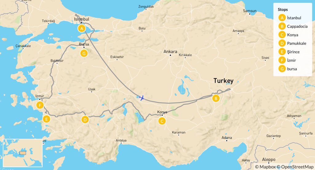Map of Discover Turkey’s History, Culture & Natural Beauty – 16 Days